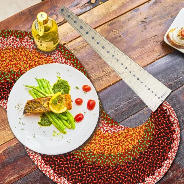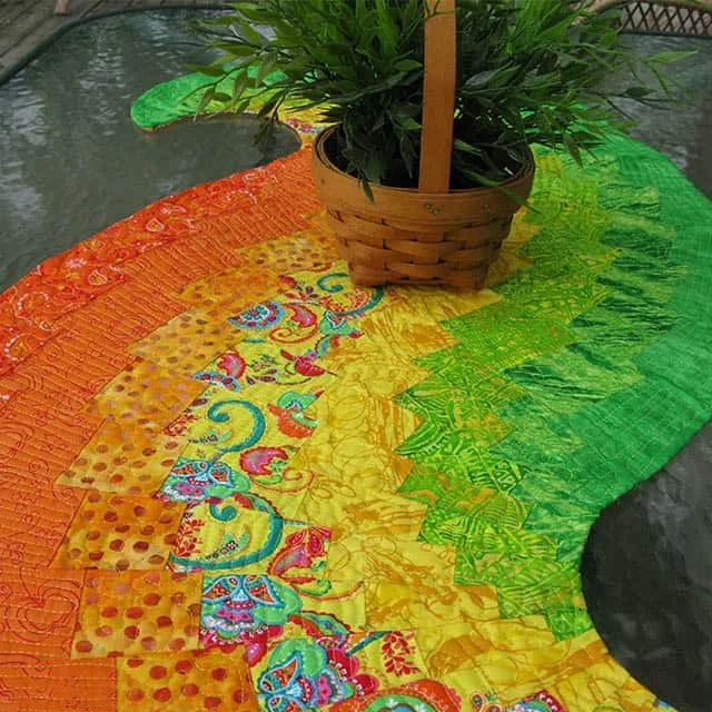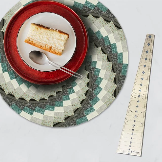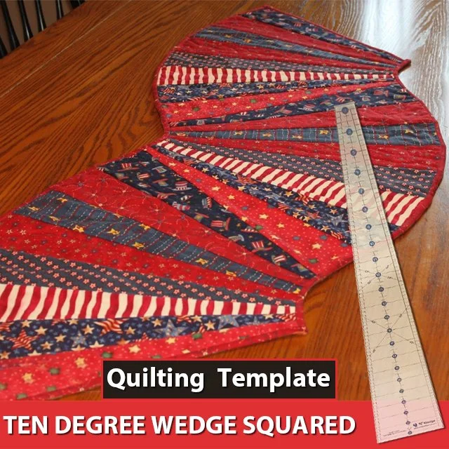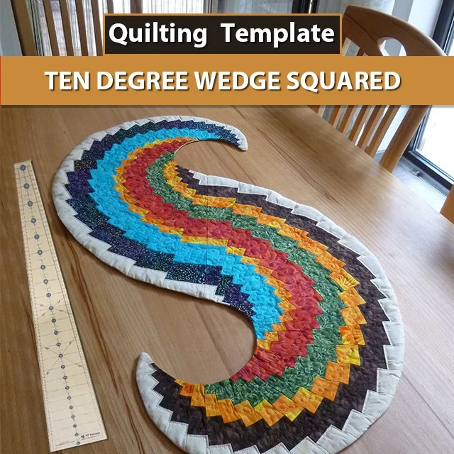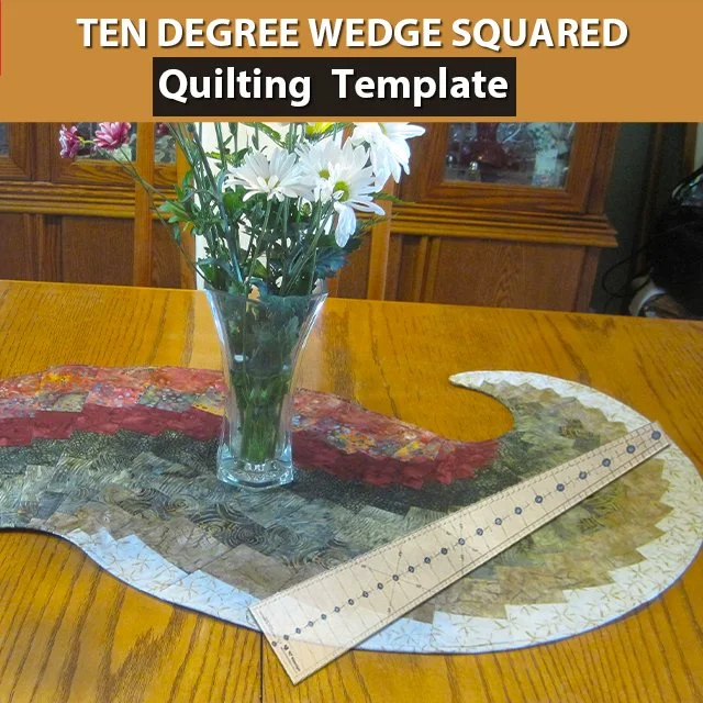 The Spicy Spiral Table Runner can be made with either the Nine or Ten Degree Wedge Tool. The difference is only slight with this particular pattern. The Nine Degree Wedge gives a slightly tighter curve where the Ten gives a gentler curve to the design.