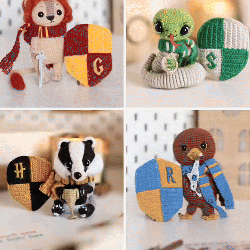 🧶🏰✨Love our cozy scarves on these adorable Hogwarts house mascots? You can create your own! Get the crochet patterns for these enchanting amigurumi toys and bring your favorite Hogwarts companions to life!