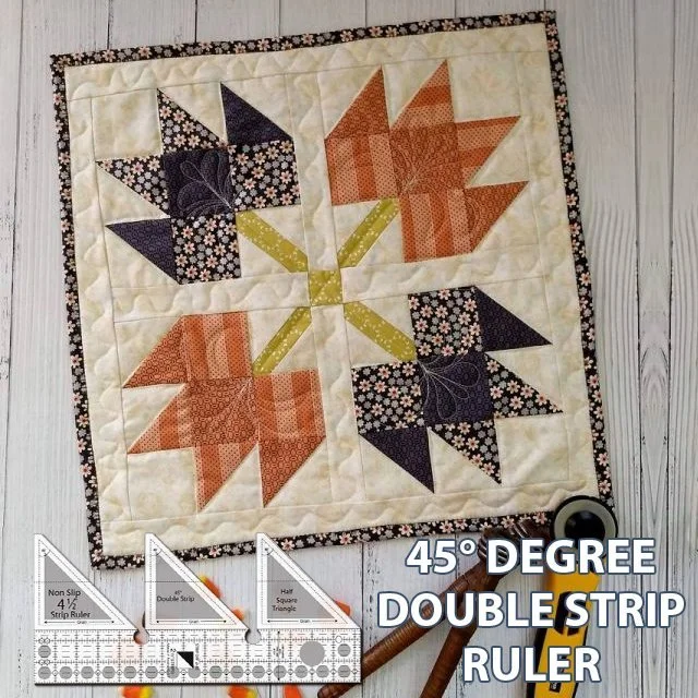 The 45° Double-Strip ruler is one of a range of Strip Rulers that are designed to make cutting Half-Square-Triangles, Quarter-Square-Triangles, 60° Triangles, Trapezoids and more from 2½" wide strips quickly and easily!