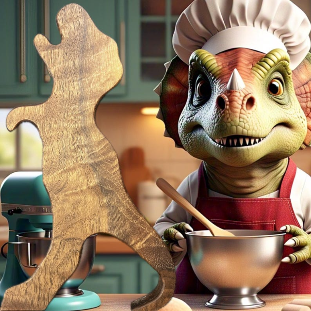 Just like real dinosaurs, no two Bake-a-Saurus Rex are the same. Each piece has its own unique wood grain pattern, making your dino buddy a true original. No factory clones here—only handcrafted charm, straight from the Jurassic kitchen era!