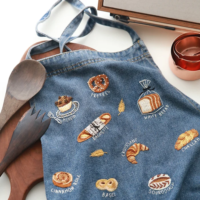 We offer four fantastic versions of our embroidery kit to suit your preferences. Among them, the Denim Apron Version and Denim Bag Version stand out with their unique denim accessories. Each of these versions includes either a denim apron or a denim bag, perfect for showcasing your completed bread-themed masterpieces. The other two versions provide equally charming options, ensuring there's something for everyone.