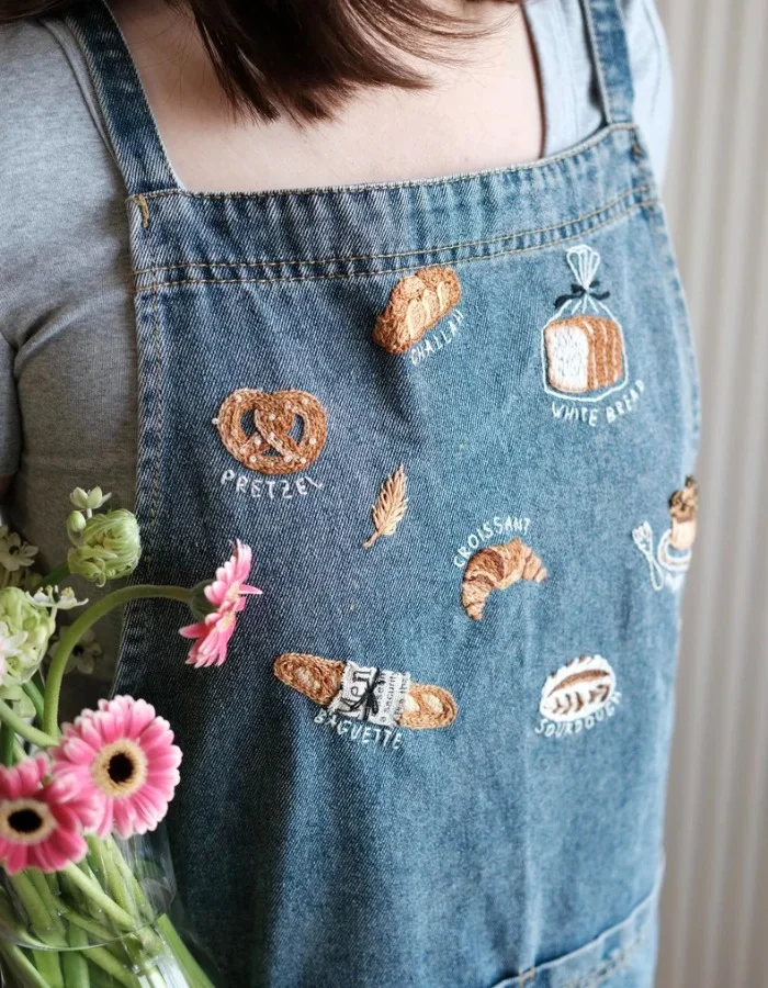 Our kit includes high-quality denim fabric, colorful embroidery threads, detailed bread patterns, and a comprehensive stitching guide in English. Whether you’re stitching a crusty baguette or a sweet cinnamon roll, our guide will help you every step of the way. The Denim Apron Version includes a stylish apron, while the Denim Bag Version comes with a trendy bag—both ideal for personalizing with your new skills.