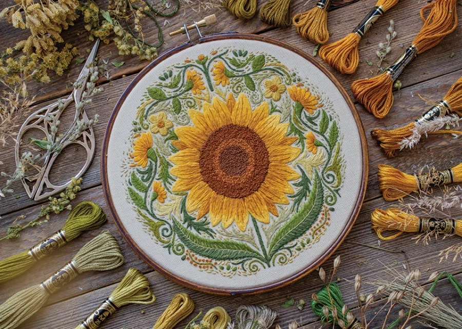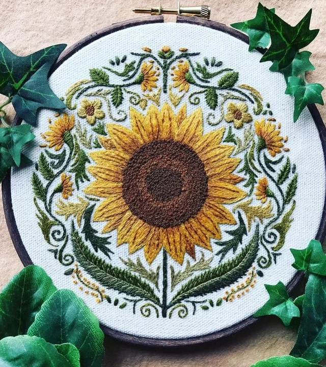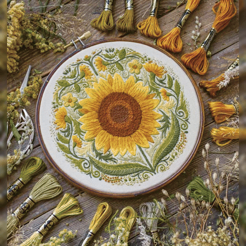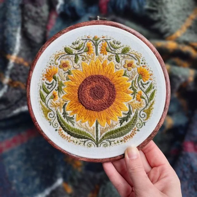 Embroider Sunflowers into Nature's Tapestry! Transform thread into art inspired by the radiant beauty of sunflowers. 🌻🌼