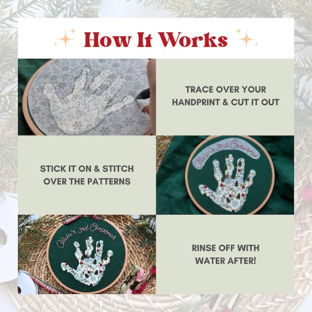 The water-soluble stabilizer makes crafting a breeze — it sticks like a charm, supports your fabric, and disappears with a warm rinse. Easy, magical, and oh-so-holiday-perfect! 🎅