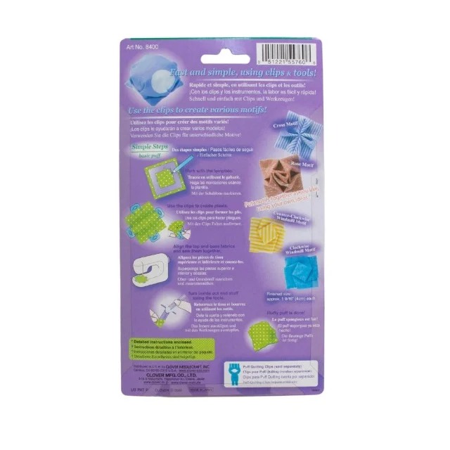 All these goodies are neatly packaged in a printed cardboard package with a plastic sleeve, measuring approximately 219mm x 125mm. It's not just a set; it's a treasure trove of crafting possibilities! 🎁Ready to take your crafting game to the next level? The Clover 8400 Small Puff Quilting Clip Set is here to make your projects pop with puffiness and charm! Don't wait; grab yours today and let the crafting magic begin! ✨