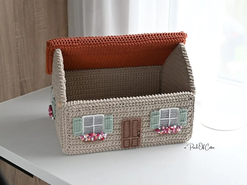 🏡 Crochet House Basket Pattern – Cozy Storage with a Twist!