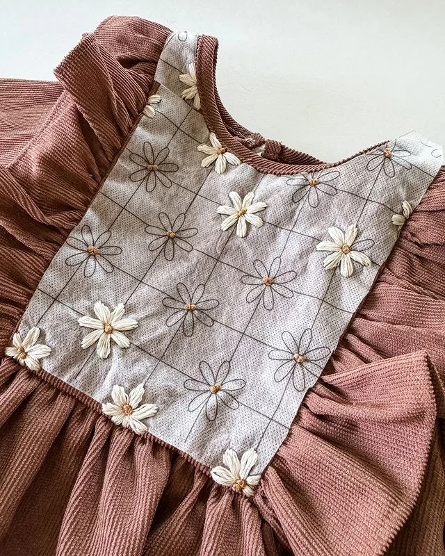 Craft with Confidence I personally stitched this pattern on a brown corduroy dress, showcasing its adaptability. Now, it's your turn to make your fashion statement! Whether you prefer subtle elegance or bold creativity, our Daisy Lattice kit adds that extra flair you've been looking for. 💃🌼