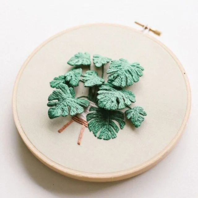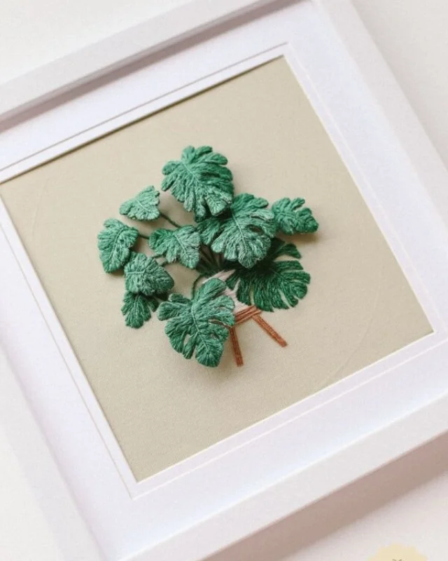Design Details: This isn't your average embroidery design; it's a masterpiece that leaps off the hoop with its 3D technique called stumpwork. Each stitch is meticulously crafted to capture the essence of a thriving Monstera, ensuring that your stitchery is as lifelike as it gets.