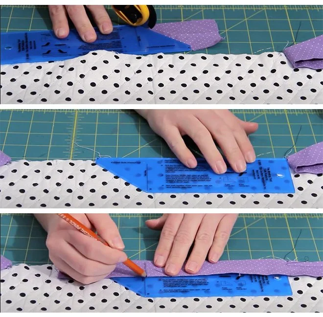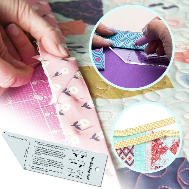 When you finish the last seam of the binding only an angle seam will work to reduce the bulk of this seamThe Binding Tool makes a perfect ending every time. Two measurements, two cuts and you're on your way to a great finish.