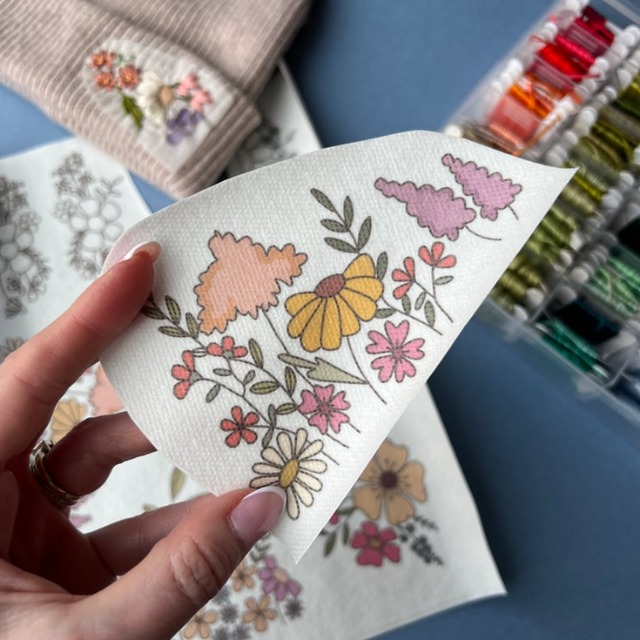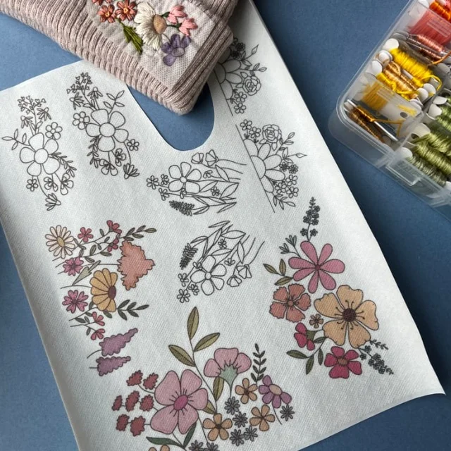 These designs work on all kinds of fabrics—canvas shoes, cozy knitwear, jackets, bags, and more! You name it, you can stitch it. 🥿🧣 The best part is that the stabilizer washes away once you’re done stitching, leaving only your beautifully embroidered designs behind. 🌿 No messy leftovers—just gorgeous floral accents to show off!