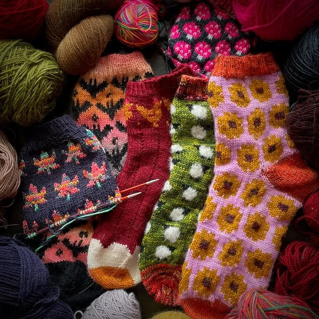 Ready to weave joy into every stitch? 🌈 Add some fun to your knitting life and sock drawer with Charlotte Stone's Joyful Colorwork Socks!