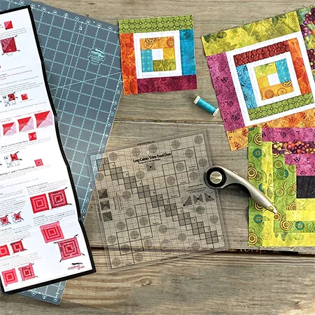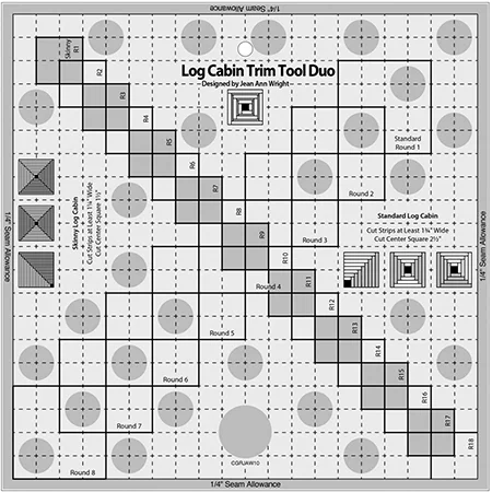 The Log Cabin Trim Tool TemplateS feature exclusive marking to create perfect finished Log Cabin; Half Log Cabin; or Courthouse Steps blocks Steps blocks up to 10in.