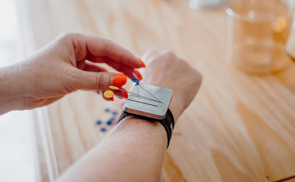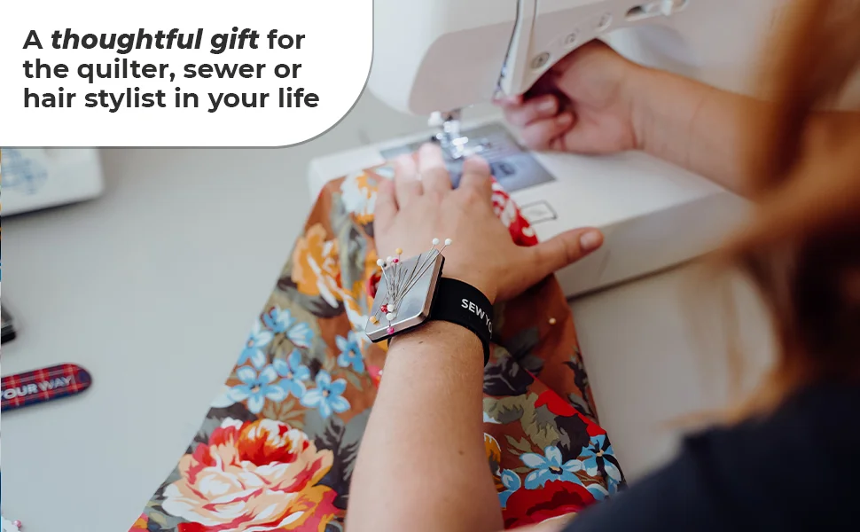 - STYLISH & MODERN - BPA-free Natural Silicone Wristband... Sewing gift chosen by seamstresses and sewers who want a magnetic pin cushion without toxins, slippage, or sweat build up. The magnetic face not only looks stylish and modern, but it also conveniently holds pins in place as you sew keeping your hands free. Great shewing gift!