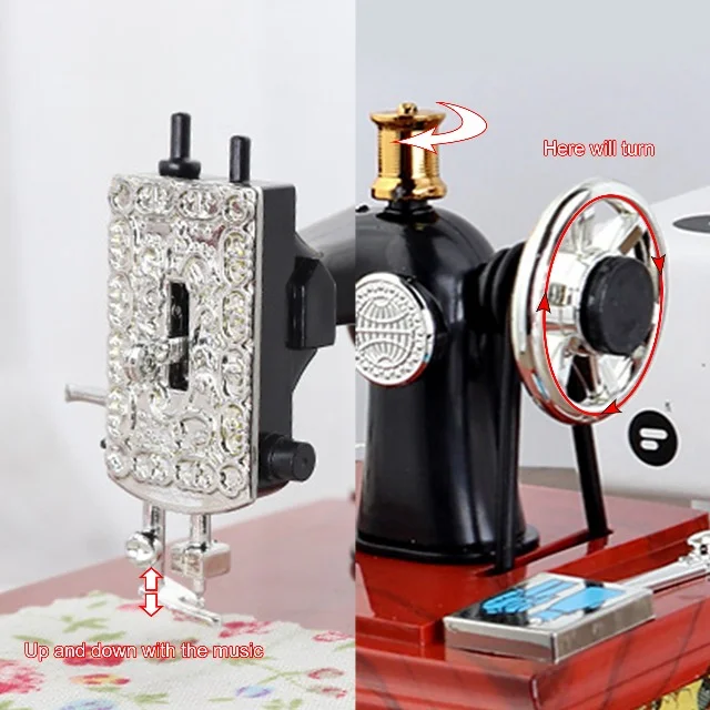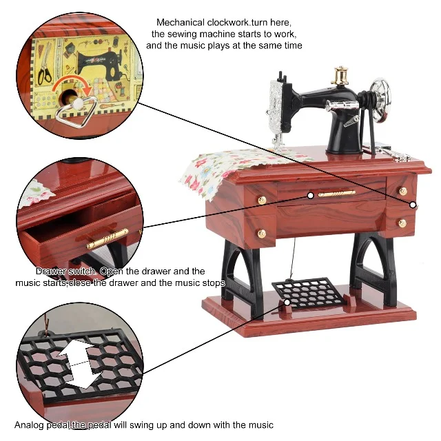 Introducing our classical music box - the perfect gift for anyone who loves music or vintage decor! Made from high-quality plastic and finished with a beautiful spray paint design, this retro simulation sewing machine music box is both functional and aesthetically pleasing.