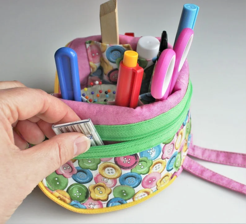 Use this wonderful sewing pattern to make yourself a clever tabletop organizer that will keep your small sewing notions handy and easy to find. No more lost sewing tools!