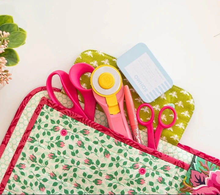 But what if your sewing space is constantly on the move? No worries! The Sewing Space Station has got you covered. With its built-in storage, you can keep everything together, even when your sewing space is always changing. Inside the mat, you'll find a range of spacious pockets that can hold not only your tools and notions, but also fabric, quilting rulers, works in progress, and even an entire letter-sized pattern! There's no such thing as having too many pockets when it comes to organizing your sewing supplies.
