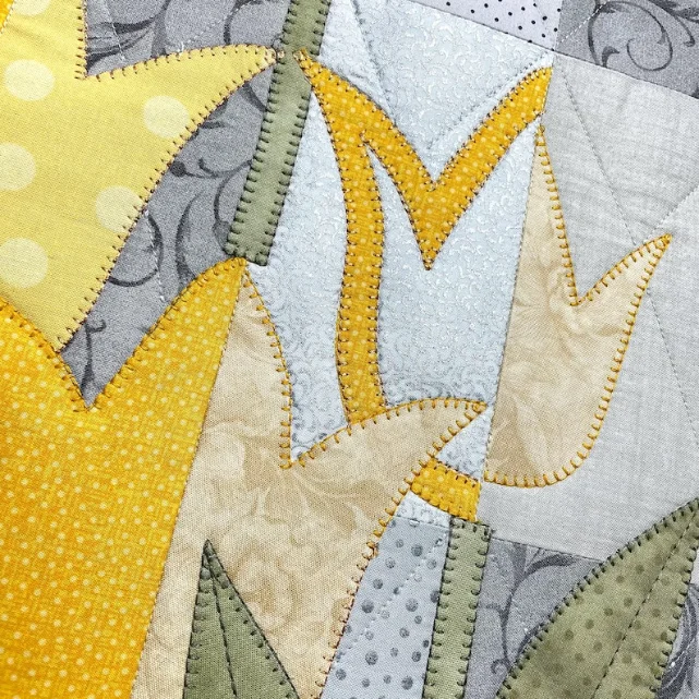 The background is made of simple rectangles (yay, easy sewing!), but the tulip appliqué is where the fun begins. Mix and match fabrics to create a whole garden of unique, cheerful blooms.