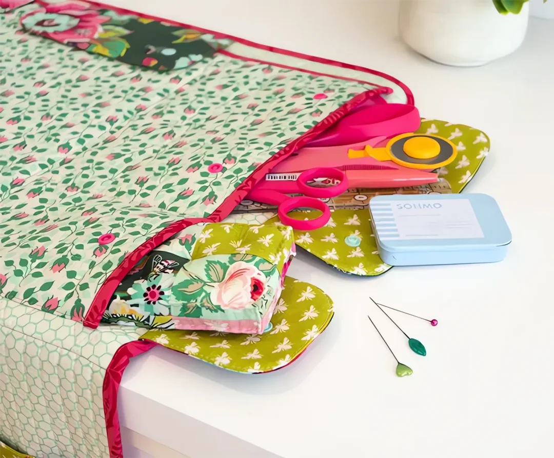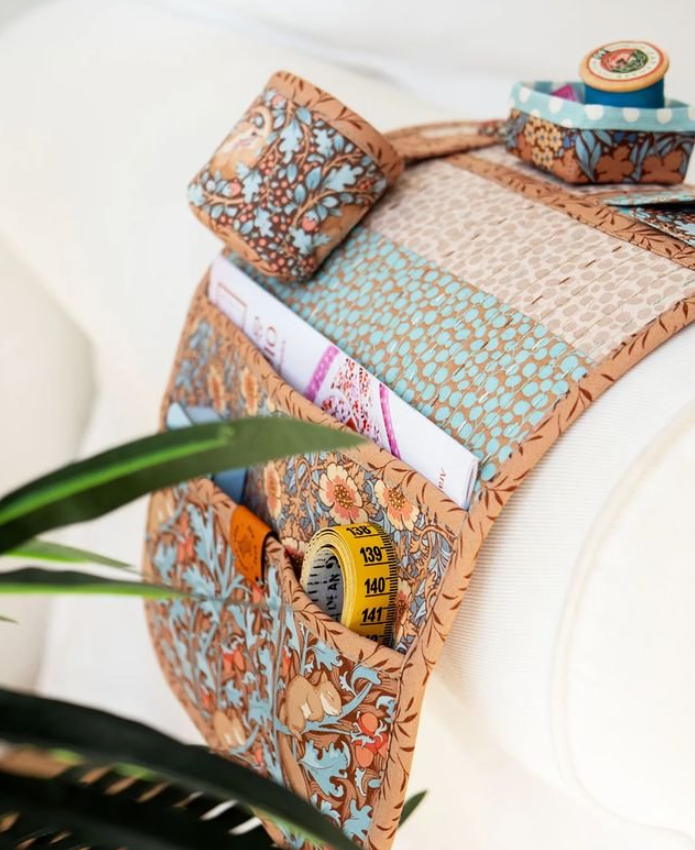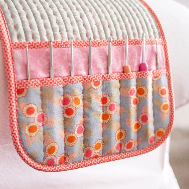 The Smart Sofa Station is not only a multi-craft organizer but also a stylish addition to your armchair. With its beautifully quilted base and a variety of pockets, it caters to the needs of quilters, English paper piecers, crocheters, embroiderers, and more! Now you can keep your scissors, notions, and projects in orderly, easy-to-grab places - no more hunting around for your misplaced tools.