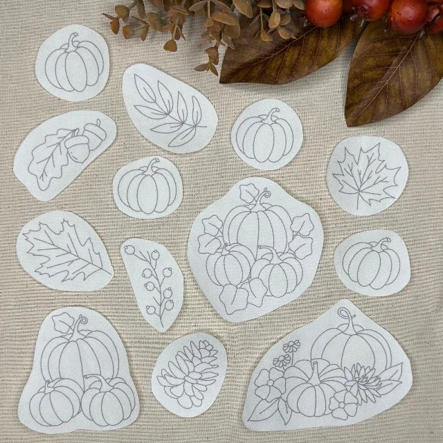 What's Included: Each kit comes with 13 single-use, transferable, and water soluble patterns. This means you have a whole bunch of options to play with, each one ready to bring your fall-inspired dreams to life. From pumpkins and leaves to acorns and beyond, this kit has it all! 🎃🍂